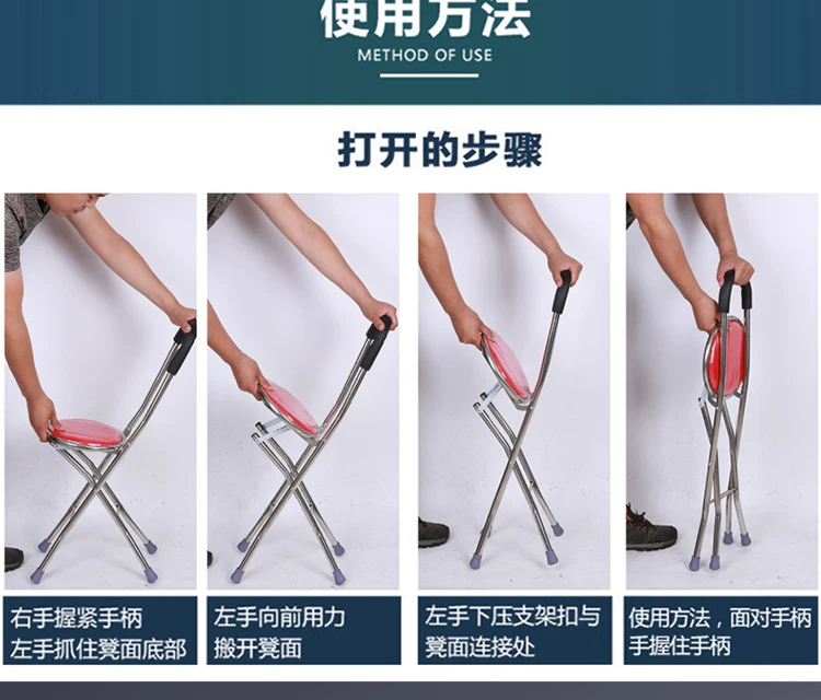 / 老人折叠防滑手杖多功能带凳子老年座椅可坐拐杖凳